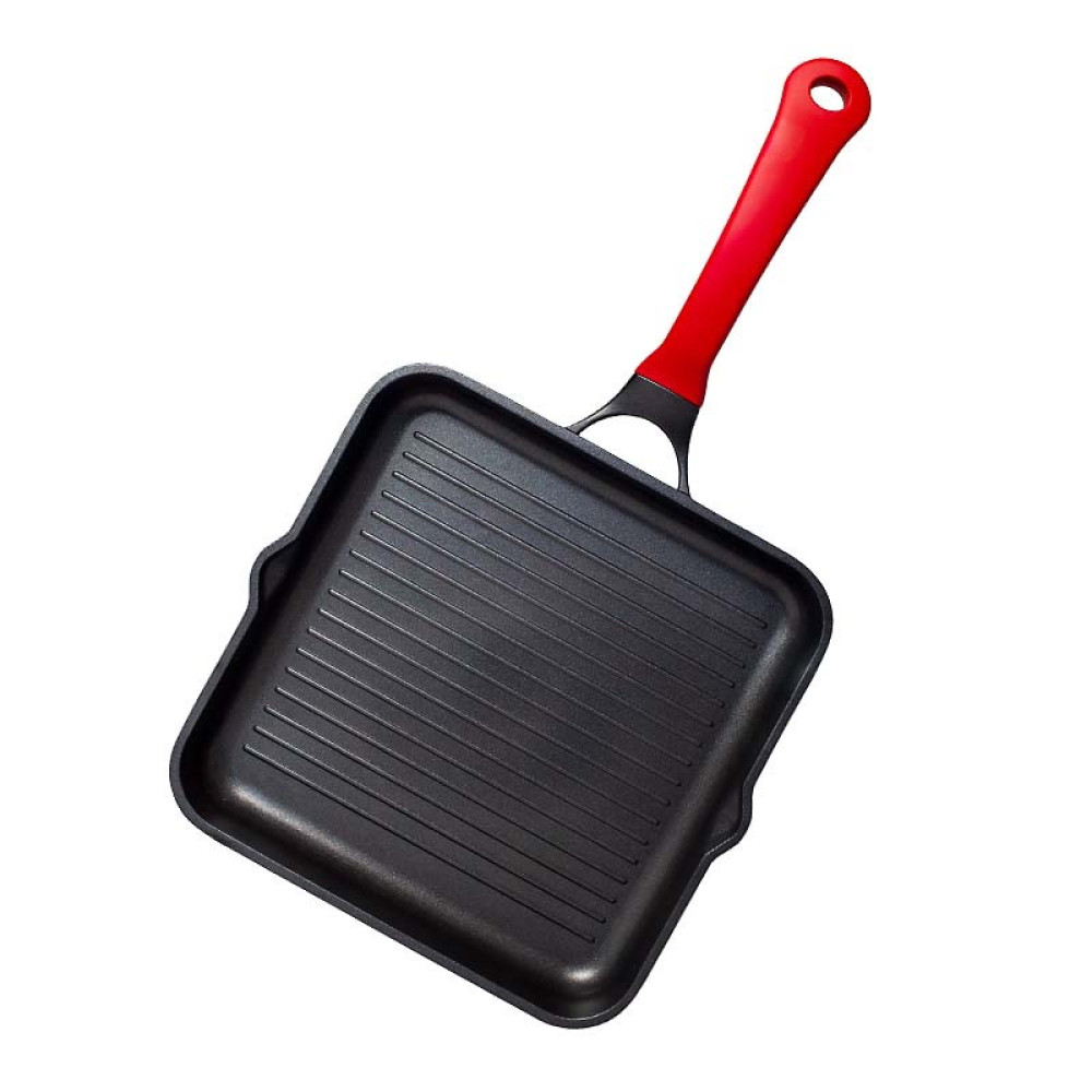 Квадратна форма 28x28 см дає змогу розмістити більшу порцію продуктів, а міцна бакелітова ручка з м’яким покриттям soft-touch не нагрівається й забезпечує надійну фіксацію в руці.